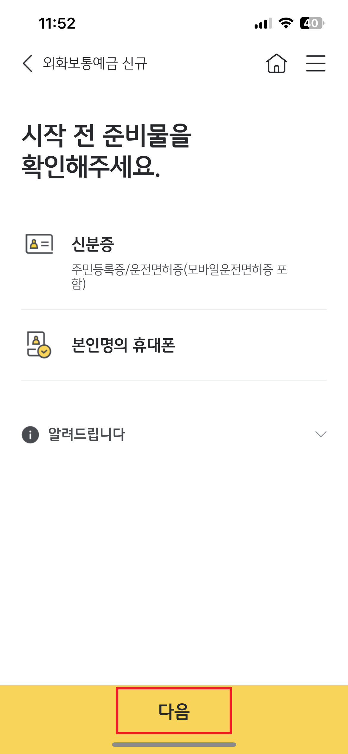 6. 시작 전 준비물을 준비하고 '다음'을 눌러주세요.