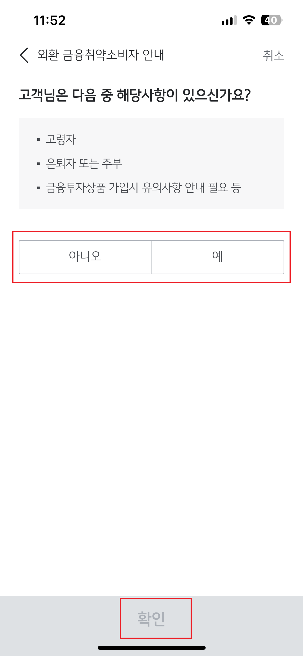 7. 해당사항이 있으시면 '해당사항'을 클릭