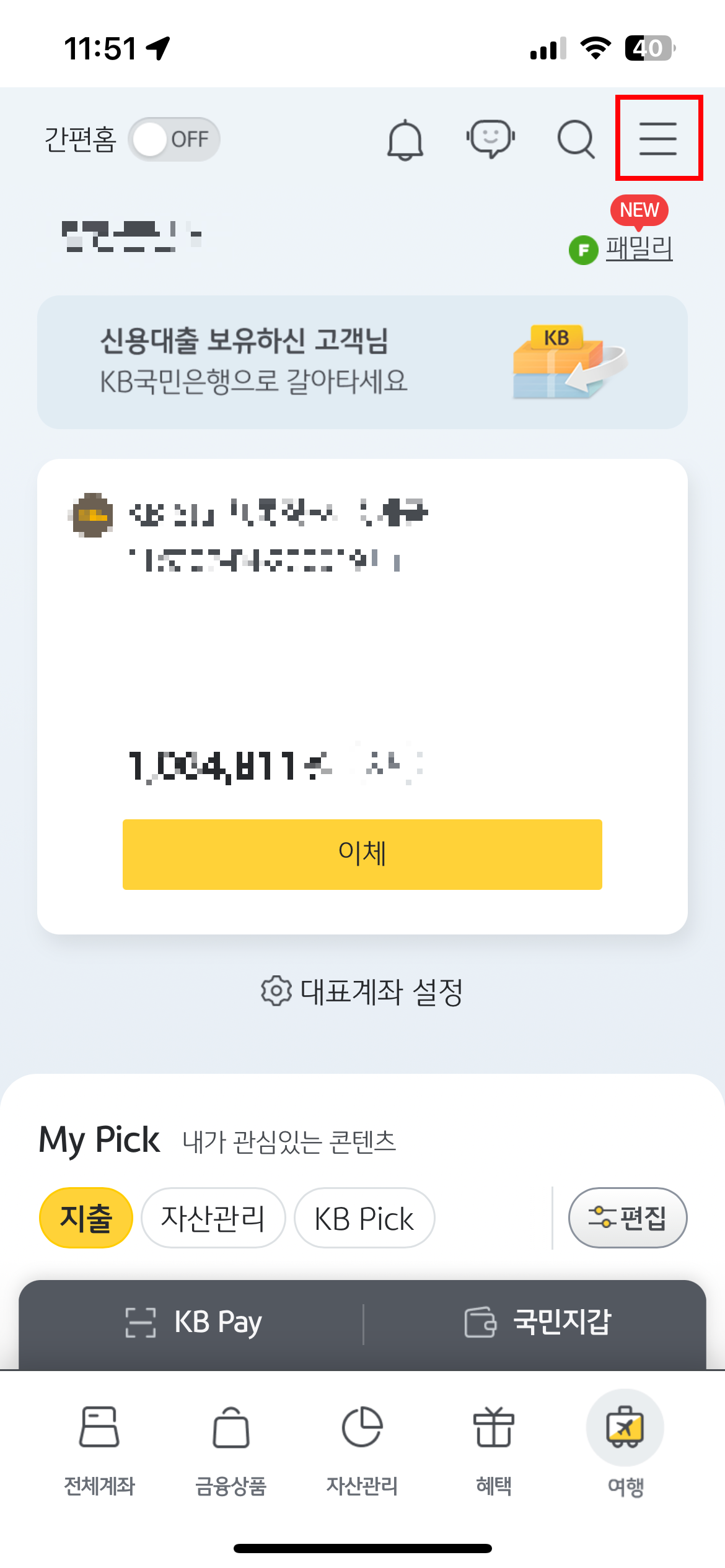 먼저 KB국민은행 모바일 앱에 접속해주시고 아래 빨간 표시대로 클릭하시면 손쉽게 개설 가능합니다.