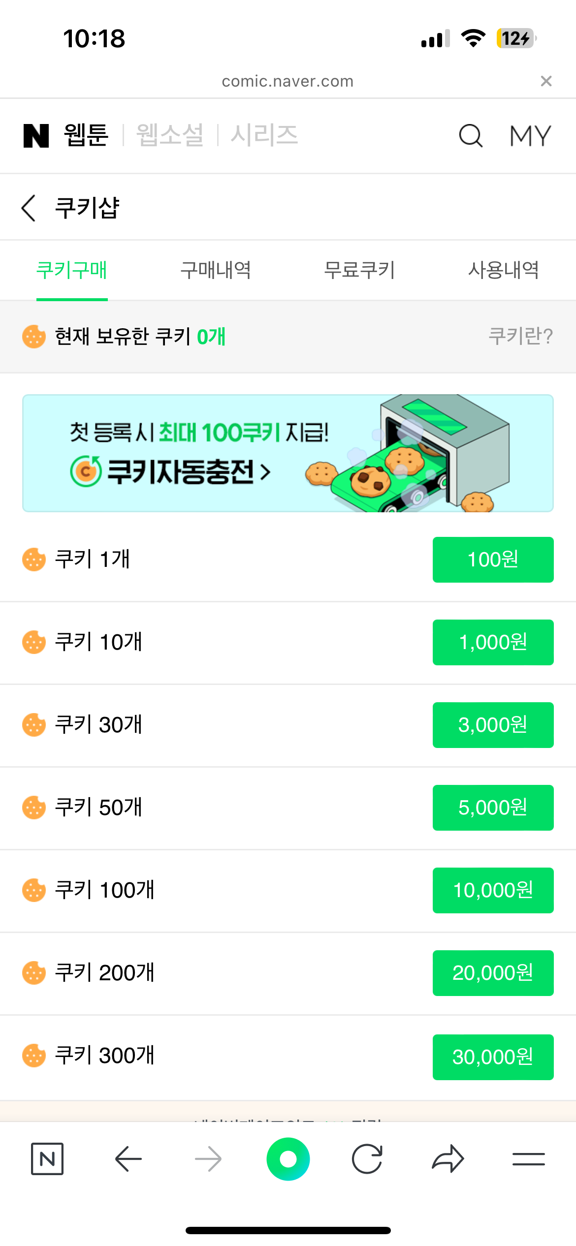네이버 웹툰이나 시리즈로 소설을 많이들 보시나요? 재밌게 보시다보면 나도 모르게 쿠키를 굽게 되죠. 네이버 웹툰이나 네이버 시리즈 어플로 결재하게 되면 쿠키 가격은 120원입니다. 오늘은 120원 쿠키를 100원으로 구울 수 있는 방법에 대해 자세히 알려드릴게요!!