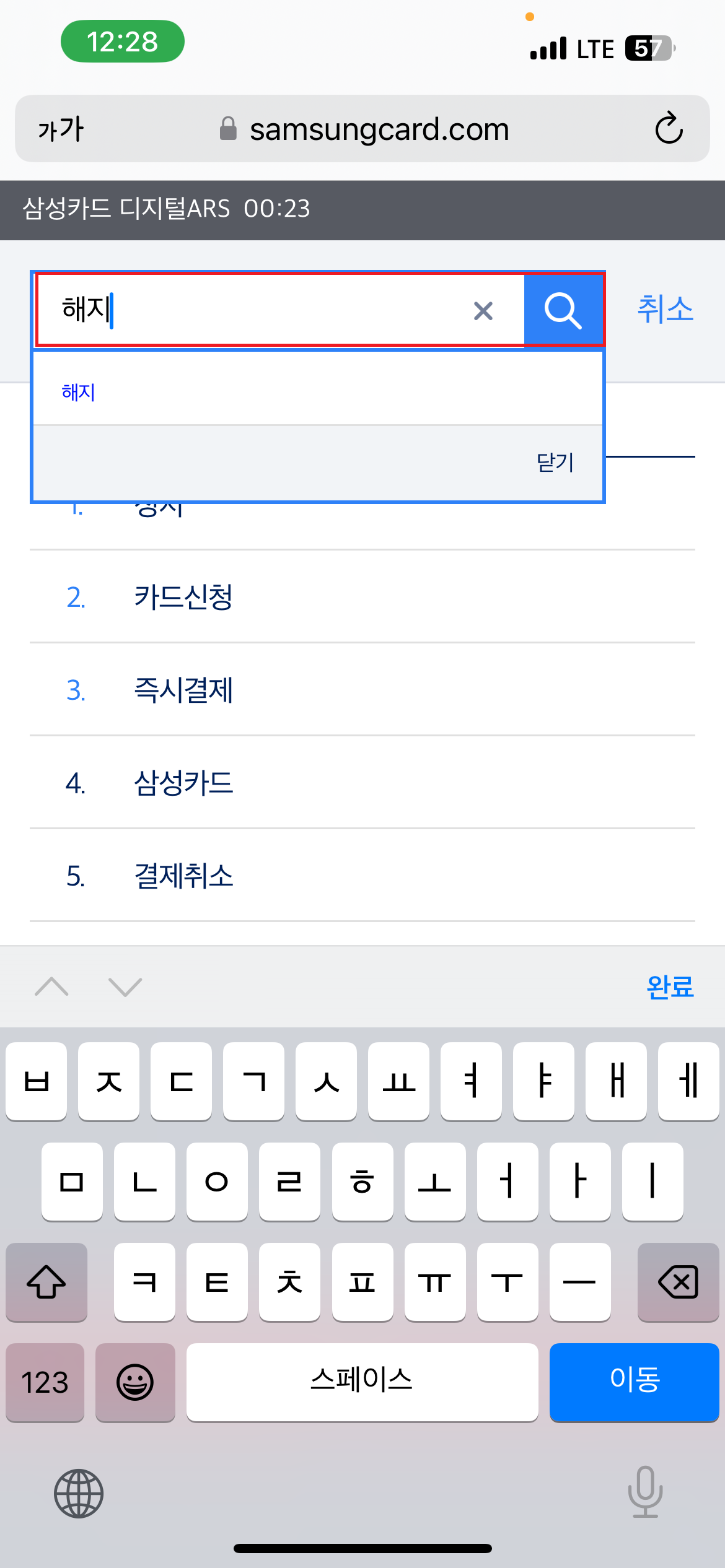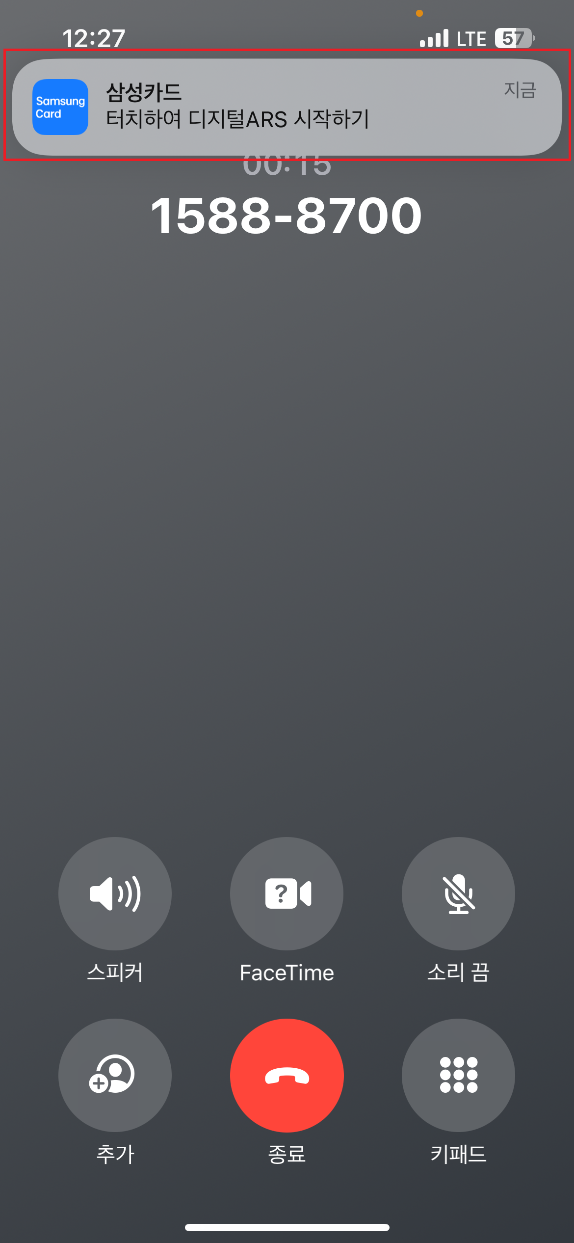 2. 통화 후 잠시 대기하면 디지털ARS가 나오는 알림창 클릭 → 검색창 클릭
