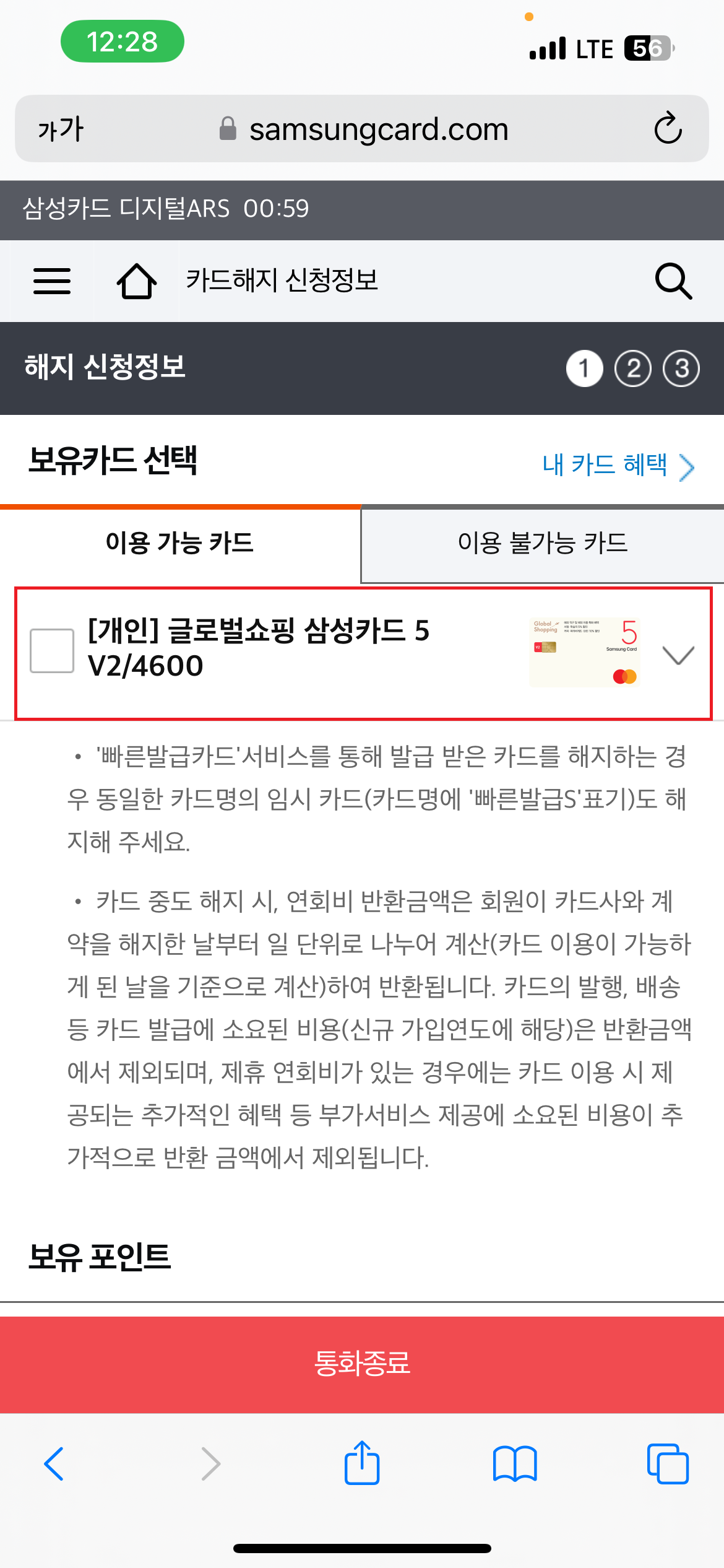 3. 해지 검색 → '카드해지 신청' 클릭 → 본인확인
