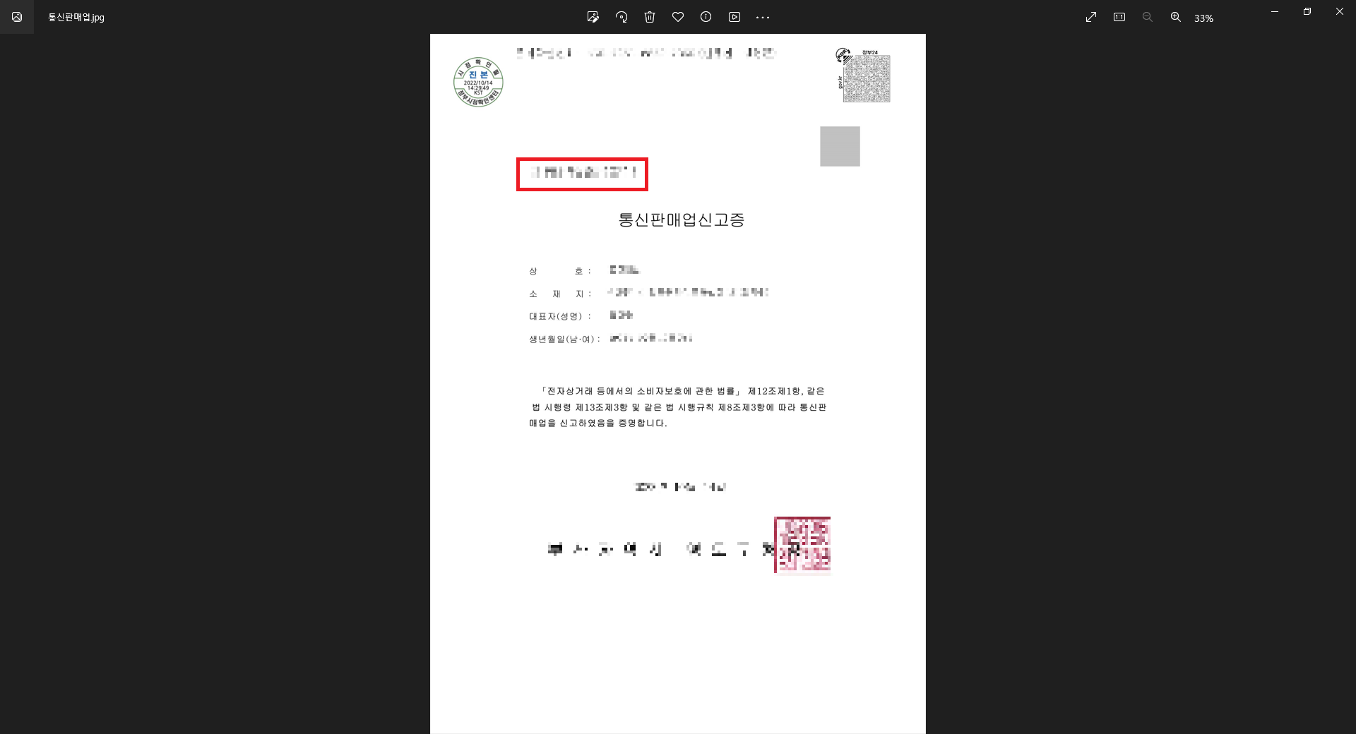통신판매업신고증의 왼쪽 상단에 있는 제20xx으로 시작하는 번호를 적어주시면 됩니다.