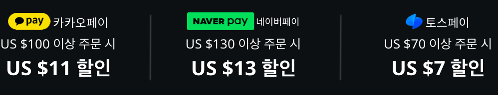 이번 블랙프라이데이에서는 총 10개의 카드사 및 페이로 할인이 가능하니 사용하시는 카드나 구매금액에 맞춰 준비하세요