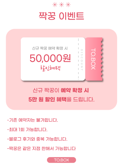 저희는 짝꿍 이벤트 + 계약 후기 + 본식 후기 작성 조건으로
