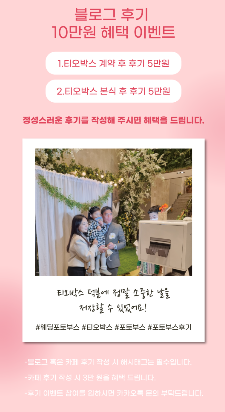 안녕하세요, 이번달에 결혼한 신랑&신부입니다 😊 결혼 준비 하나하나 해나가면서 정말 많은 선택의 순간들이 있는데, 오늘은 그중에서도 하객들과의 특별한 추억을 만들어 준 포토부스 계약