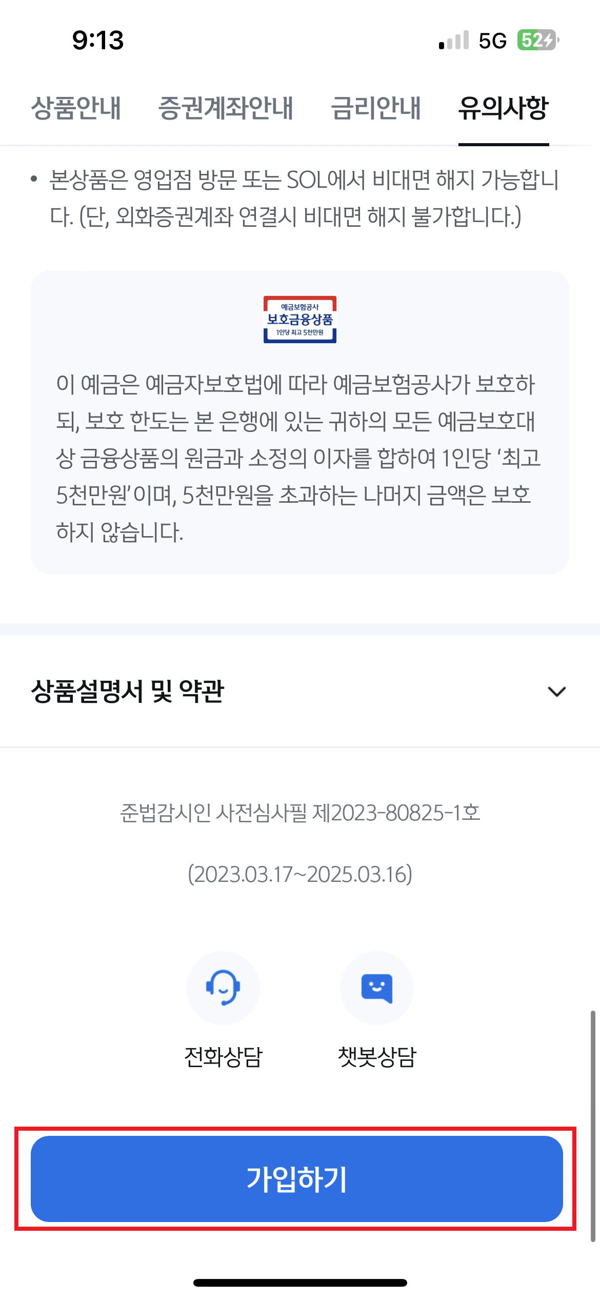 2) 화면을 밑으로 내린 후 → 가입하기 클릭